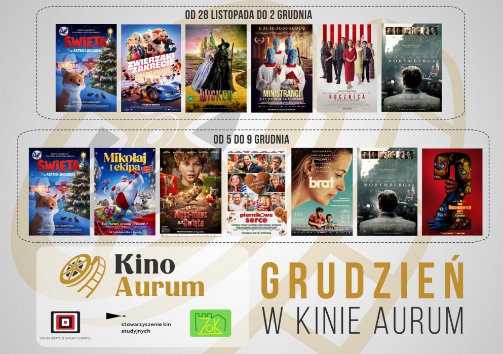 Po prawej stronie widnieje logo Kina „Aurum”, po lewej logo Złotoryjskiego Ośrodka Kultury.
