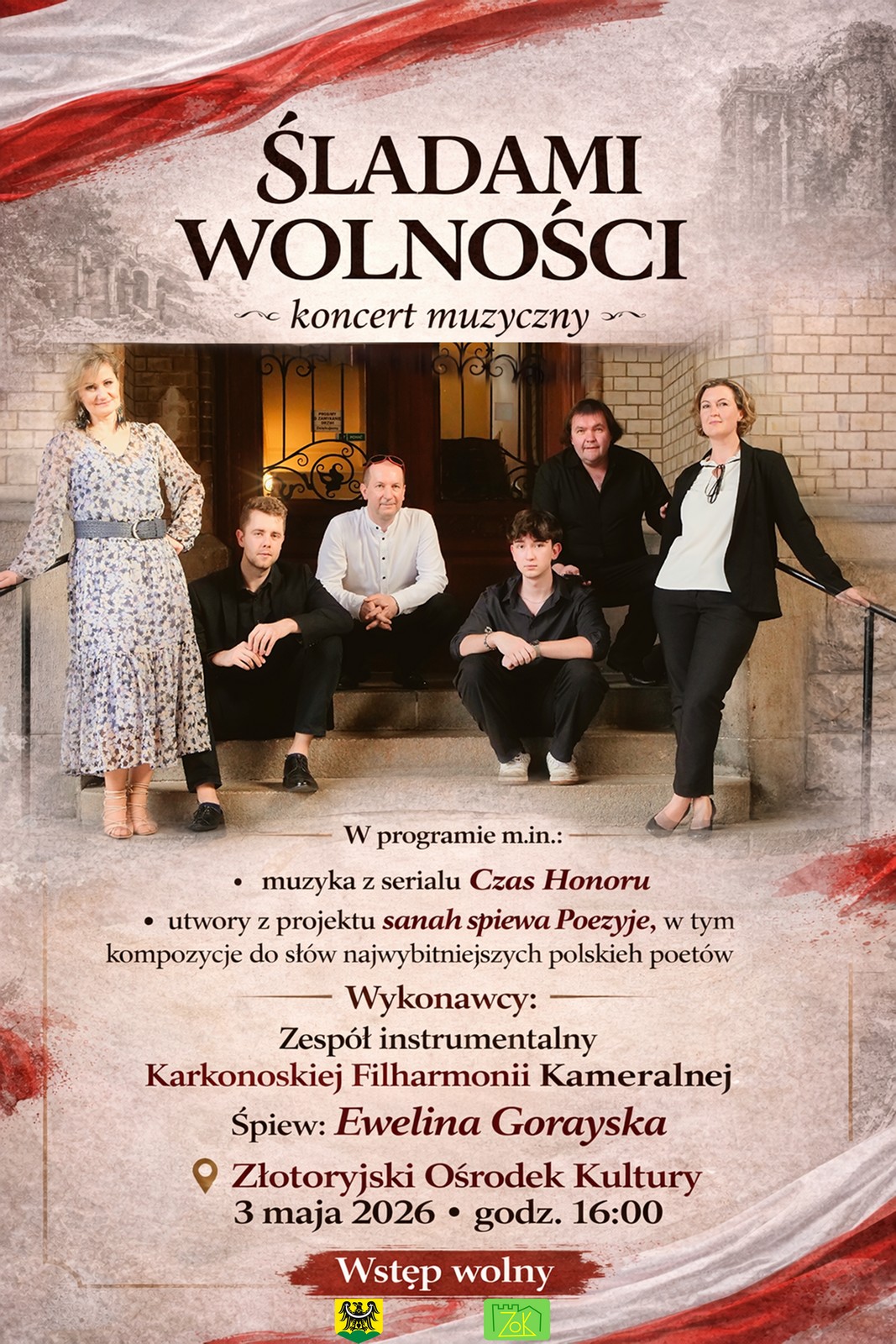 Obchody Święta Narodowego rozpoczną się o godz. 11:15 uroczystością pod Pomnikiem Niepodległości, a o godz. 12:00 odprawiona zostanie Msza św. w intencji Ojczyzny w Kościele NNMP. Zwieńczeniem dnia będzie koncert „Śladami Wolności" o godz. 16:00 w sali widowiskowej ZOK – wystąpią Zespół Instrumentalny Karkonoskiej Filharmonii Kameralnej oraz wokalistka Ewelina Gorayska. W programie muzyka z serialu Czas Honoru oraz kompozycje z projektu sanah śpiewa Poezje. Wstęp wolny!