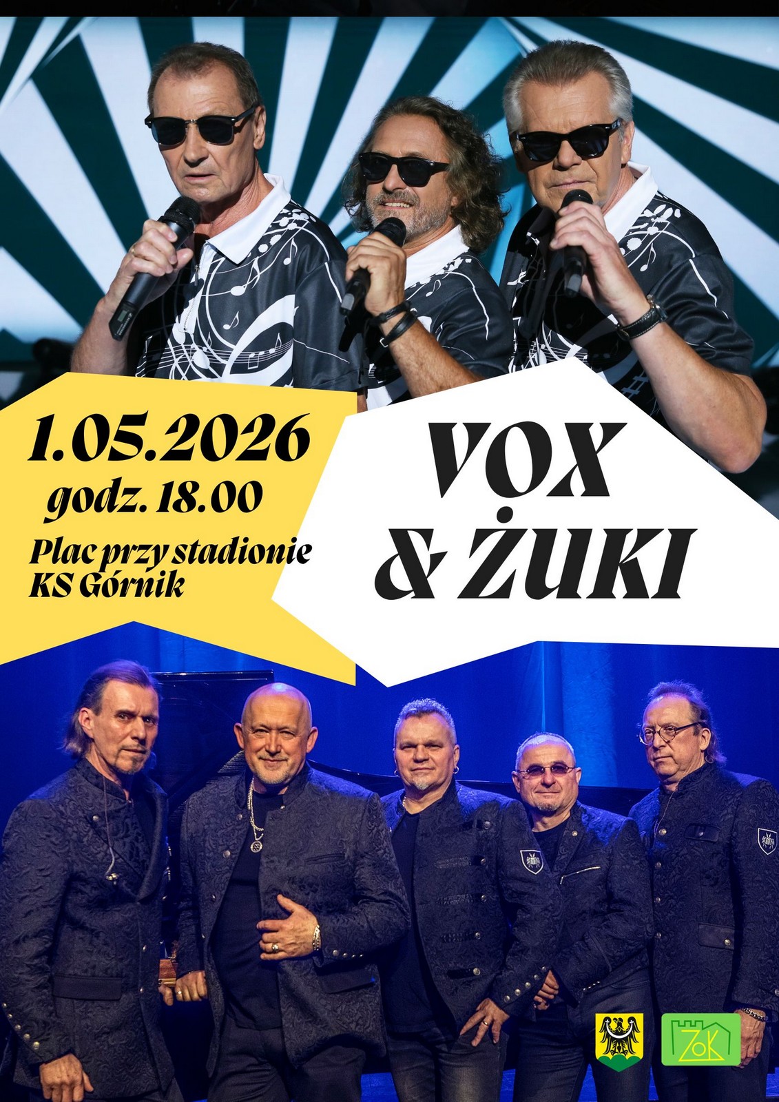 Wieczorem, o godz. 18:00, na placu przy stadionie KS Górnik zagrają legendy polskiej sceny rozrywkowej – VOX i Żuki! To będzie prawdziwe święto muzyki i dobrej zabawy pod gołym niebem. Nie przegap!