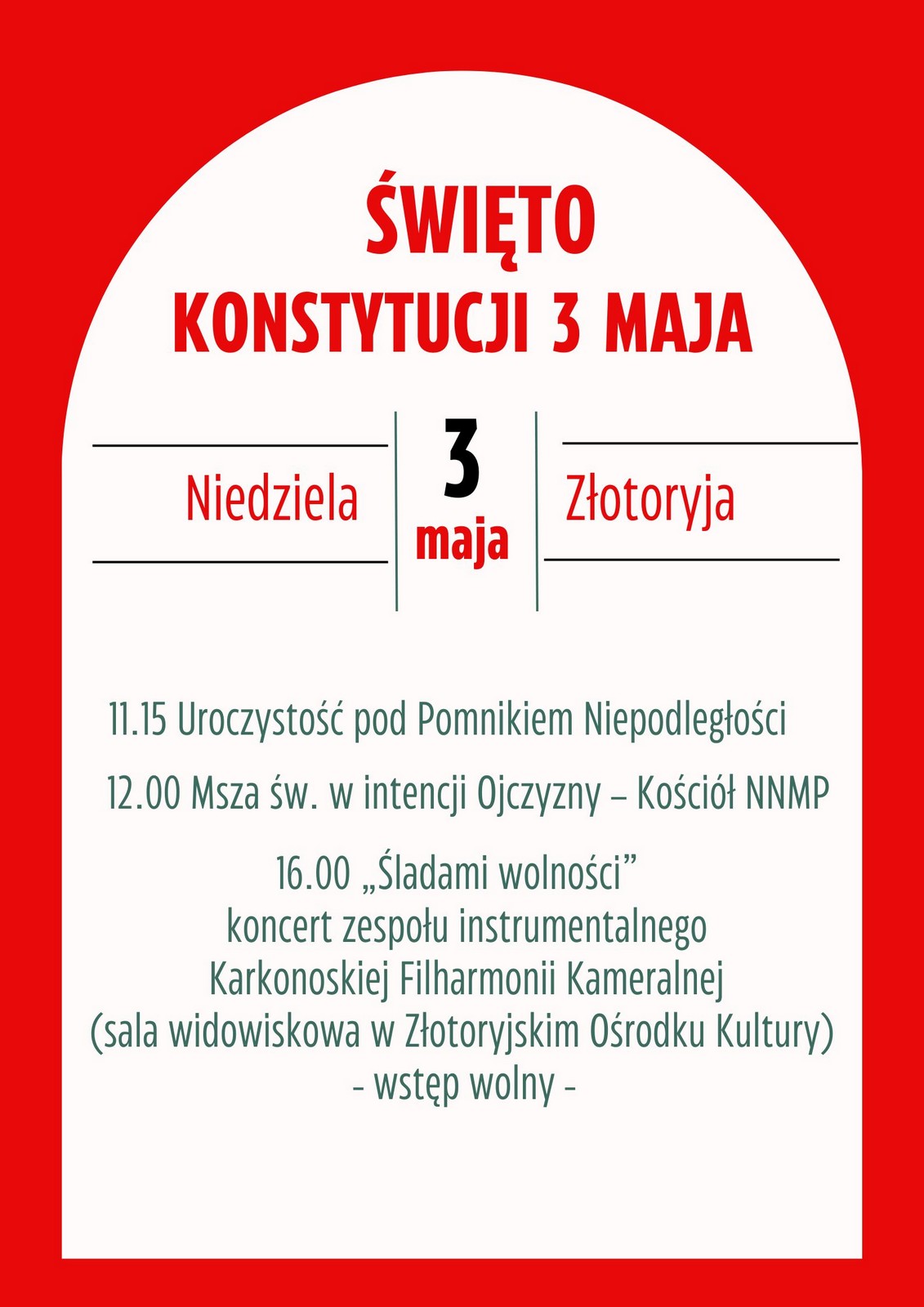 3 maja (niedziela) – Święto Konstytucji 3 Maja