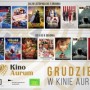 Na dole grafiki umieszczone jest logo Kina Aurum, logotypy instytucji wspierających oraz duży napis „GRUDZIEŃ W KINIE AURUM”.