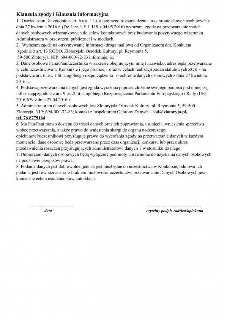 Regulamin i karta zgłoszenia znajdują się w załączeniu, więcej informacji pod nr tel. 76 878 29 85 lub mailowo: muzeumzlota@o2.pl